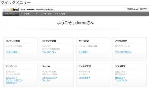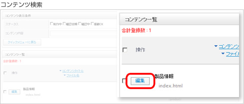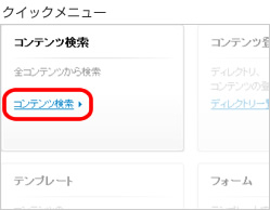 1.クイックメニューの「コンテンツ検索」をクリックします。