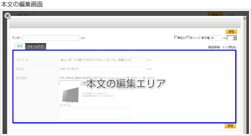 10. 本文の編集ウィンドウ上下にある「送信」ボタンをクリックして入力した内容を反映させます。