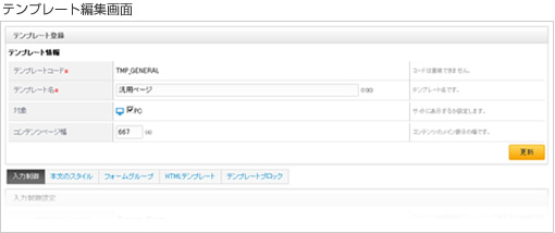 ページのスタイルや出力するHTMLタグ、定形入力フォームなどを登録しておくのが『テンプレート』です。