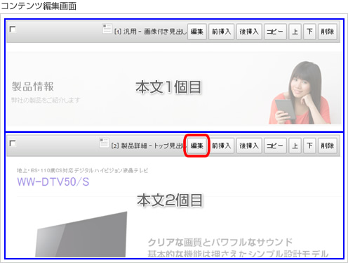 1. 編集したい本文の「編集」ボタンをクリックします。