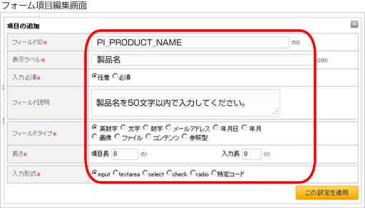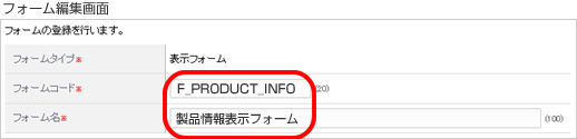 | フォームコード | フォームに割り振るIDです。英数字で入力します。 |