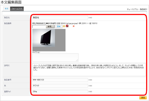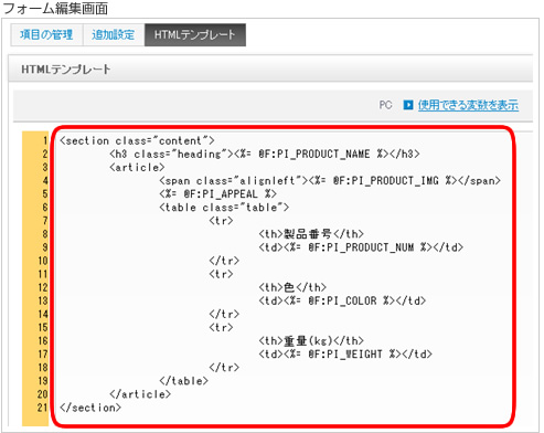 テンプレート編集- Step.3 定形入力フォームを本文で使えるようにする
