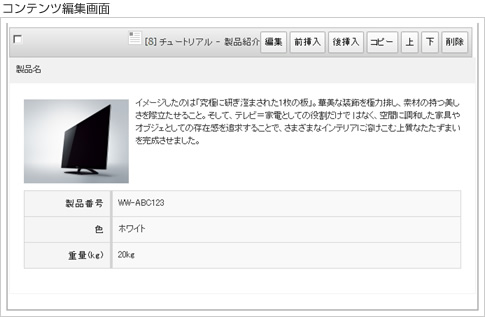 5. テンプレート編集画面のウィンドウを閉じ、コンテンツ編集画面に戻ります。